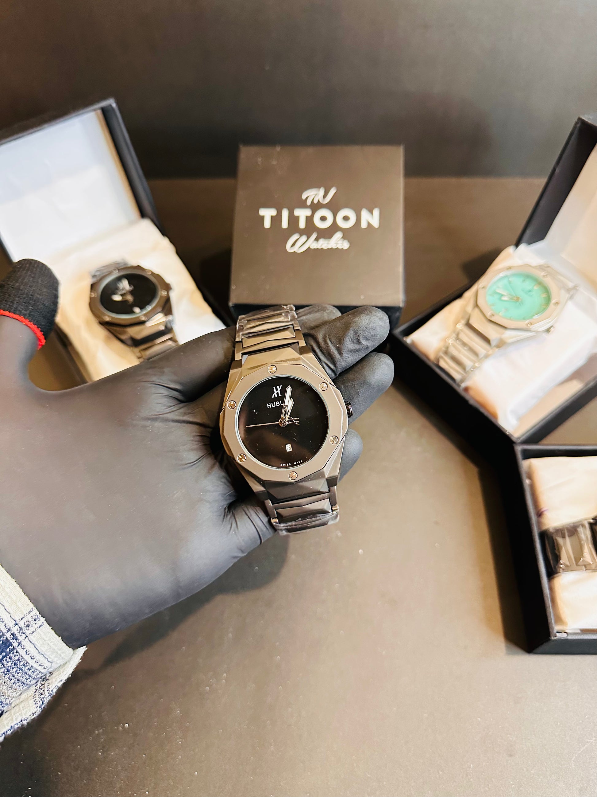 Elevate your wristwear game with this stunning Hublot-inspired timepiece – a perfect blend of modern design and classic sophistication. Designed with a distinctive octagonal bezel and bold detailing, this watch is a statement of power and precision.